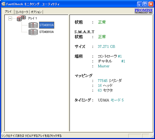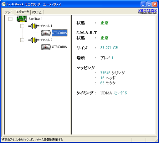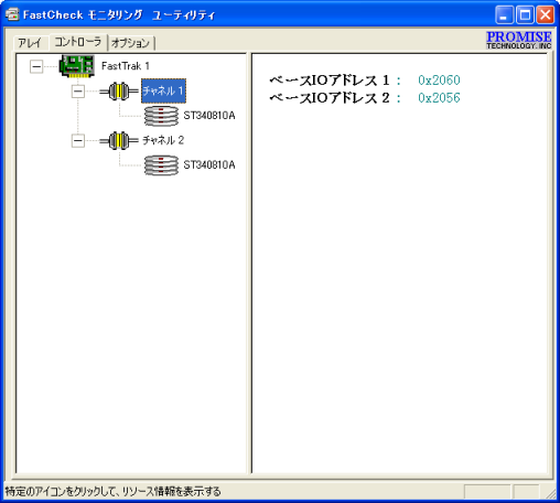 「スタート」ボタン→「プログラム」→「Promise」→「FastTrak」→「FastCheck Monitoring Utility」をクリック