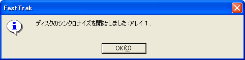 - 「アレイ1においてリビルドプロセスを初期設定してください」と表示されたら「OK」ボタンをクリック