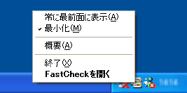 - タスクトレイの「FastCheckモニタユーティリティ」アイコン上で右クリック