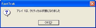 Windowsを起動時またはWindows起動中に、FastCheckモニタリングユーティリティがディスクアレイの異常を検出すると、警告メッセージが表示されます。