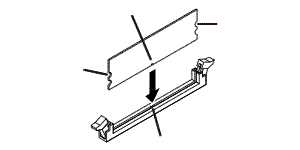 | メモリには、向きがあります。逆には差し込めないようになっていますが、向きを間違えたまま無理に差し込むと故障の原因になりますので注意してください。 |