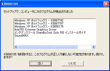 Service Packの削除には十分ご注意ください。
