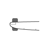 イラストのようにハンドベルトの両端を起こし、突起の付いている側の端をもう片方の端の輪にくぐらせ、突起を任意の穴へ固定されるまで押し込んでください。