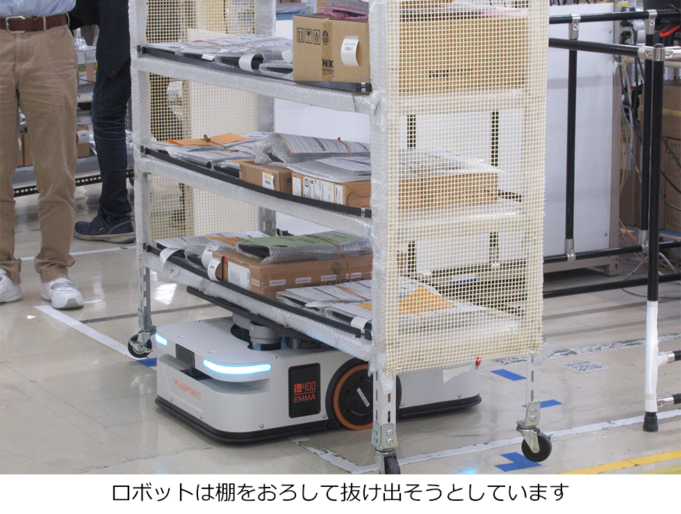 これまで人が棚台車を押して運んでいたんですが、一日の総移動距離が13キロだったんです。過酷でしょ?