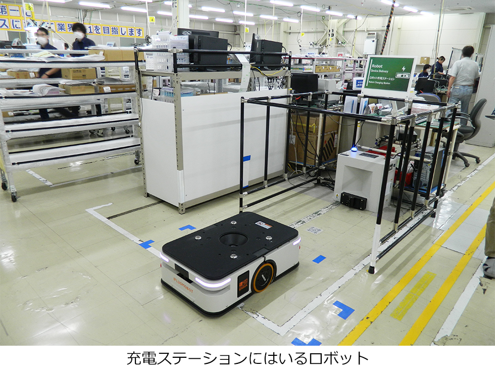 バッテリー残量が少なくなったらロボットが自分で充電ステーションに充電しに行きます。