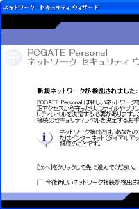 はじめてPCGATE Personalを起動したときには、次のような「ネットワーク セキュリティ ウィザード」が表示されます。 以下の手順にしたがってネットワークのセキュリティレベルを設定してください。