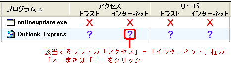 ・コンピュータウイルスの中には、自動的にネットワークにアクセスするものがあります。ポップアップ警告に表示されたプログラム名に覚えがない場合は、最新の状態にアップデートした「McAfee VirusScan Online」などのウイルス対策ソフトでウイルスのチェックをしてから、「許可する」ことをおすすめします。