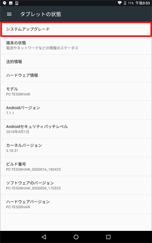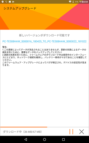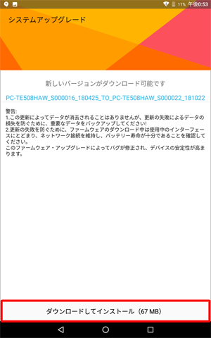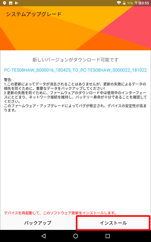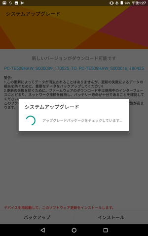 システムのアップグレードは、本機をACアダプタに接続し、無線LAN機能でインターネットに接続している状態でおこなってください。