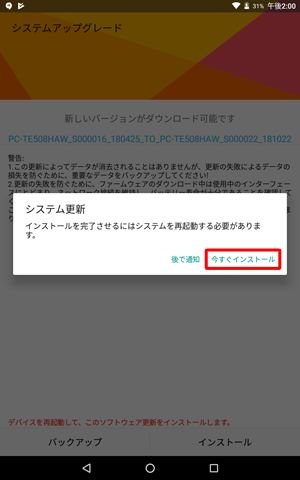 本機のシステムをインターネットからダウンロードして更新します。