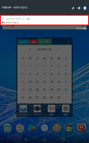 本機がアップグレードを検出した場合は、通知領域にメッセージが表示されます。