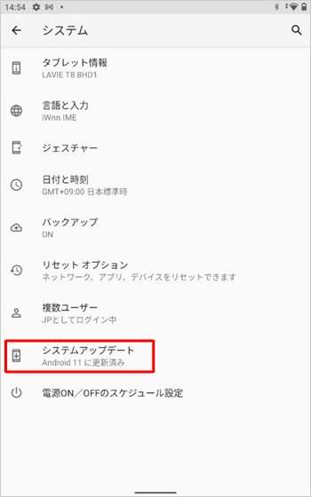 システムのアップデートは、本機をACアダプタに接続し、無線LAN機能でインターネットに接続している状態で行ってください。