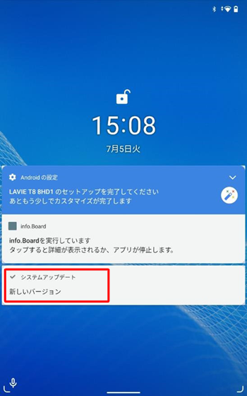 本機がアップデートを検出した場合は、通知領域にメッセージが表示されます。