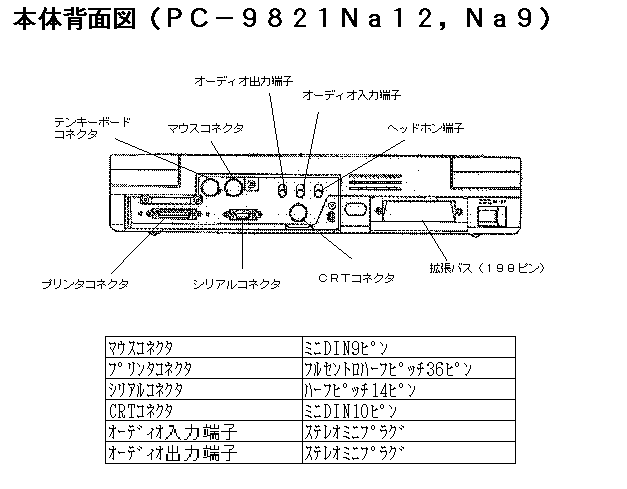 ┌──────────────────────────────────┐ │ 98NOTE Lavie │ │ PC−9821 Na12 │ └──────────────────────────────────┘ ☆PC−9821Na12/H10 標準価格:690,000円(税別) ☆PC−9821Na12/H8 標準価格:660,000円(税別) 発表:1995年11月 ※ご注意:本機には、Windows(R)95とWindows(R)3.1の両方の OSをインストールしており、本体最初の起動時に何れか片方のOSのみを選択 して使用することができます。なお、選択しなかったOSは固定ディスクから 自動的に削除されますのでご注意ください。 ■仕様一覧(PC−9821Na12) ┌─────────┬───────────────────────────┐ │ │PC−9821Na12 │ │ ├─────────────┬─────────────┤ │ │/H10 │/H8 │ ├─────────┼─────────────┴─────────────┤ │CPU │Pentium(TM)プロセッサ(120MHz) │ │┌────────┼───────────────────────────┤ ││内蔵キャッシュ │16KB │ ││メモリ │ │ ├┴────────┼───────────────────────────┤ │セカンドキャッシュ│256KB │ │メモリ │ │ ├─┬───────┼───────────────────────────┤ │ │ROM(FlashROM)│96KB(BIOS、N(88)-BASIC(86))、32KB(98NOTEメニュー他) │ │メ├───────┼───────────────────────────┤ │ │メインRAM │16MB(ユーザーズメモリ:15.6MB) │ │モ│ ├───────────────────────────┤ │ │ │別売の増設RAMボードにより増設可能(最大:48MB)(*8) │ │リ├───────┼───────────────────────────┤ │ │ビデオRAM │1MB(テキスト、グラフィック表示用) │ ├─┼───────┼───────────────────────────┤ │ │表示素子 │10.4インチTFTカラー液晶 │ │ ├───────┼───────────────────────────┤ │ │テキスト表示 │英数カナ:80文字×25行/80文字×20行、漢字(16ドット、 │ │ │ │ゴシック体):40文字×25行/40文字×20行 │ │表│ │文字単位にアトリビュート設定可能、グラフィック画面とは│ │ │ │独立したコードリフレッシュ方式のテキスト画面表示を │ │ │ │サポート │ │ ├───────┼───────────────────────────┤ │示│グラフィック │640×400ドット(4,096色中16色)、640×400/640×480ドット│ │ │表示 │(4,096色中256色)(*1) │ │ │┌──────┼───────────────────────────┤ │機││ウィンドウア│Trident社製Cyber9320(TM)を搭載 │ │ ││クセラレータ├───────────────────────────┤ │ ││によるグラ │800×600ドット(26万色中256色/65,536色)(*2) │ │能││フィック表示│640×480ドット(26万色中256色/65,536色(*2)/26万色(*2) │ │ ├┴──────┼───────────────────────────┤ │ │マルチシンク │640×480ドット(1,677万色)、800×600ドット(65,536色)、│ │ │ディスプレイ │1,024×768ドット(256色)表示可能 │ │ │接続時 │ │ ├─┴───────┼───────────────────────────┤ │サウンド機能 │PCM録音・再生機能装備、エンハンスドFM音源機能装備、│ │ │標準FM音源(FM音源6音/リズム音源6音/SSG音源3音)、拡張FM│ │ │音源(FM音源20音)、ステレオスピーカ(EBAP回路付、 │ │ │出力:0.5W+0.5W)・マイクロホン内蔵 │ ├─┬───────┼───────────────────────────┤ │入│キーボード │本体との一体型、JIS標準配列(英数、カナ)、Windows(R)95│ │力│ │対応12ファンクションキー、Windowsキー、アプリケーショ │ │機│ │ンキー、NUMキー │ │能├───────┼───────────────────────────┤ │ │ポインティング│98スライドパッド標準装備 │ │ │デバイス │ │ ├─┼───────┼───────────────────────────┤ │補│フロッピィ │3.5インチFDD×1ドライブ内蔵(着脱可能) │ │助│ディスク │ │ │記├───────┼─────────────┬─────────────┤ │憶│固定ディスク │内蔵(約1GB) │内蔵(約810MB) │ │装├───────┼─────────────┴─────────────┤ │置│CD-ROM │内蔵(4倍速) │ │ │ │ │ ├─┴───────┼───────────────────────────┤ │インタフェース │マウス(バスマウス、ミニDIN9ピン)、プリンタ(パラレル、│ │ │ハーフピッチ36ピン)、シリアル(最大115.2Kbps、ハーフ │ │ │ピッチ14ピン)、赤外線通信(IrDA規格に